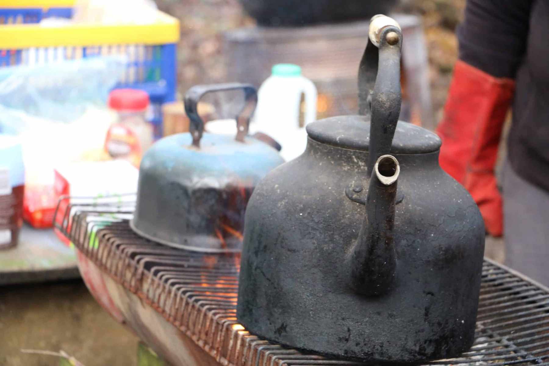 Beautifully cooked baked potatoes, tasty sausages, all the trimmings and lots of tea and coffee.